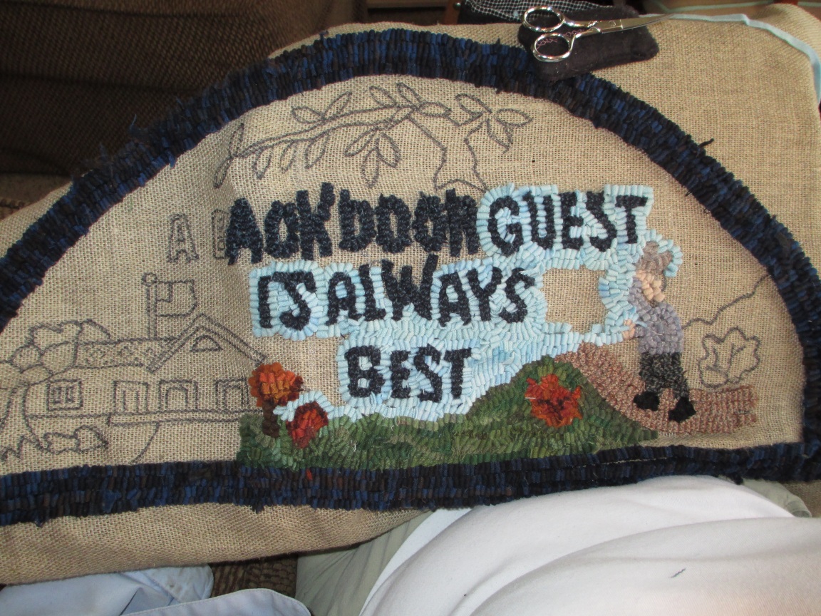 Yvonne came late and couldn't stay very long, so she didn't want to drag all her rug hooking supplies with her for such a short visit. Instead, she brought this beautiful quilt so she could work on hand quilting the cross hatching in the border - the rest of it she will quilt on her machine.
